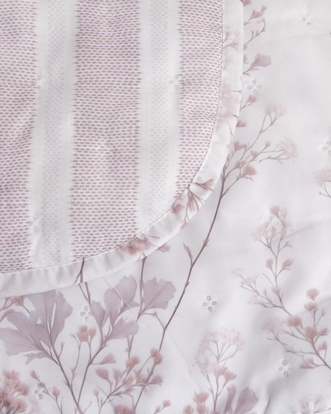 Confeccionada en suave microfibra de 90 g/m² y un relleno ligero, es la prenda ideal para los meses de entretiempo o para añadir una capa extra de estilo en invierno. Al ser reversible, tienes la posibilidad de cambiar la atmósfera de tu habitación siempre que lo desees, disfrutando de dos diseños exclusivos en una sola pieza.