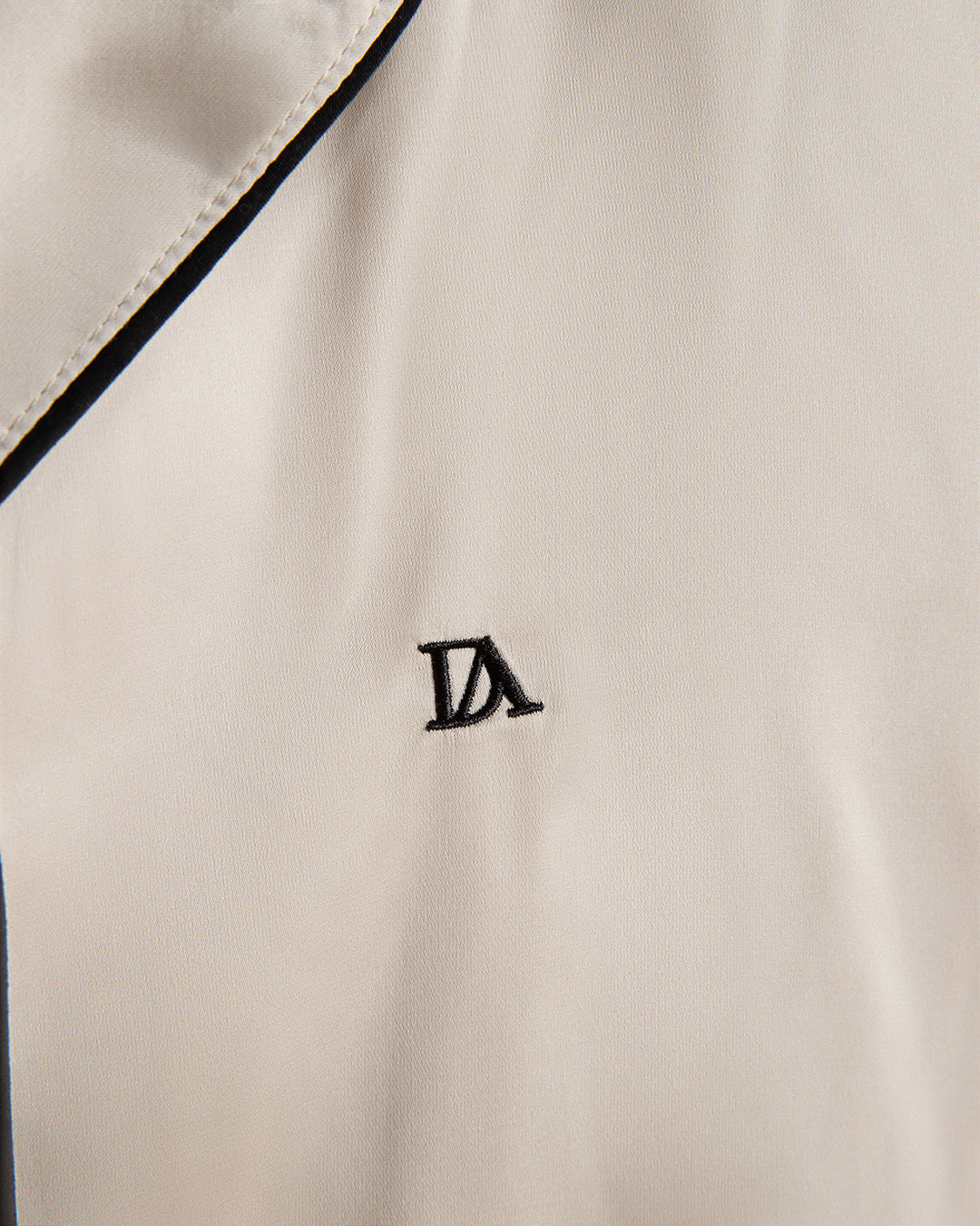 Siente el lujo en tu propia piel con este conjunto de dos piezas confeccionado en satén de alta calidad. Su acabado satinado en un sofisticado tono beige captura la luz de manera delicada, convirtiendo tu descanso en una experiencia de puro estilo y suavidad.