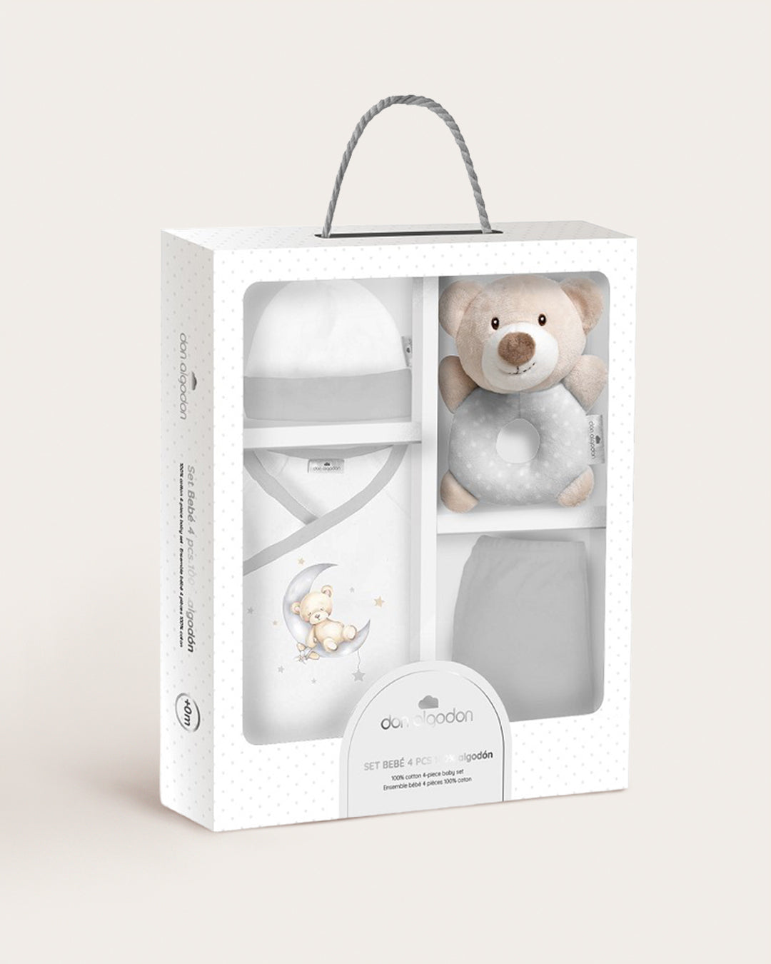Expresa todo tu cariño con este Set Bebé de Don Algodón, una canastilla completa de 4 piezas diseñada para envolver al recién nacido en suavidad y confort. Con estilos modernos, es el conjunto ideal para la maleta del hospital o como un regalo de nacimiento inolvidable.