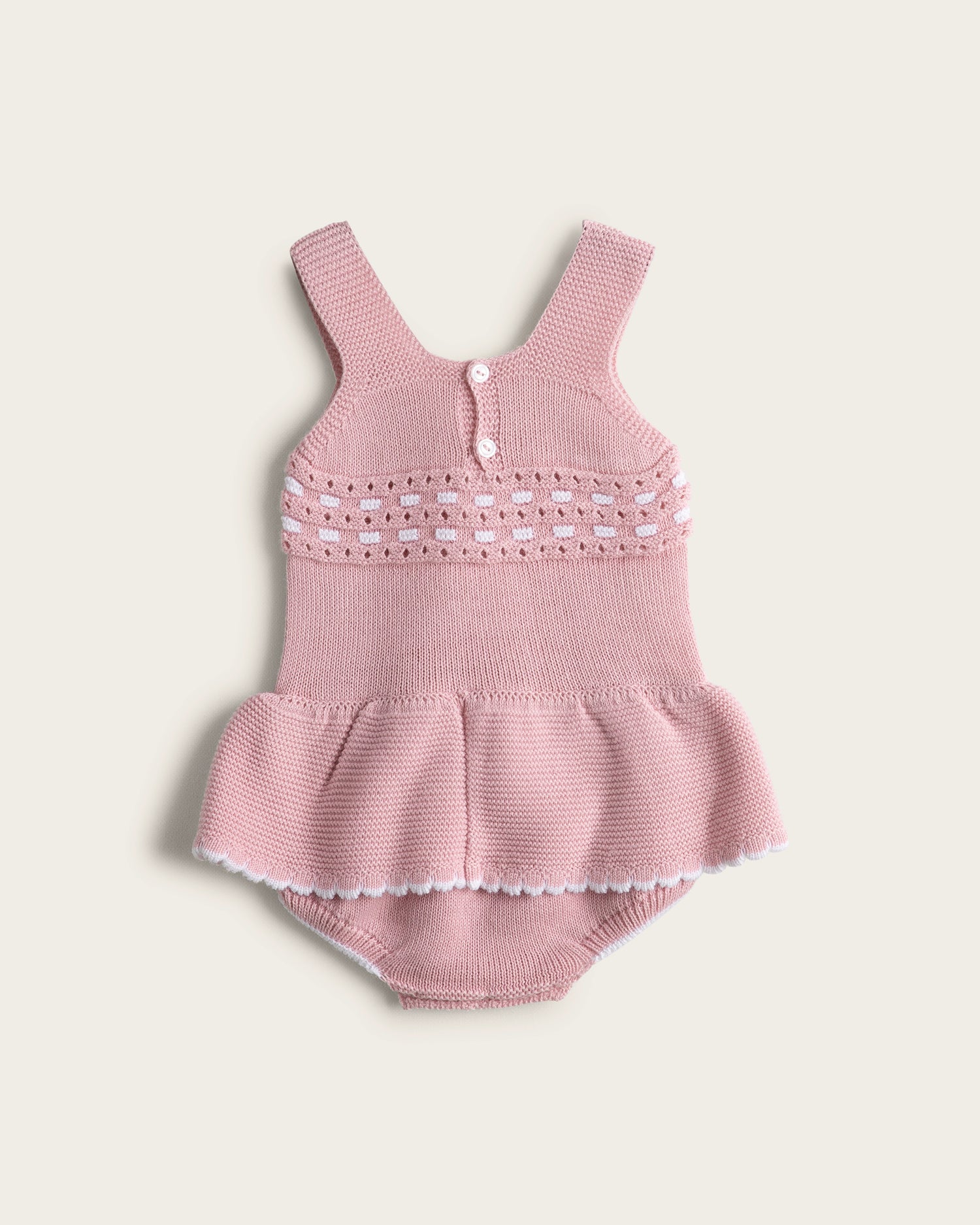 Con diseño tipo rana, un corte clásico que permite una total libertad de movimiento para las piernas del bebé, facilitando además el cambio de pañal y ofreciendo un look tierno y tradicional.