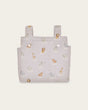 Su estructura compacta incluye compartimentos laterales de fácil acceso y un espacio central optimizado para llevar lo esencial, como biberones y pañales. Es un accesorio práctico, resistente y con una estética dulce, perfecto para mantener el orden durante los paseos diarios.