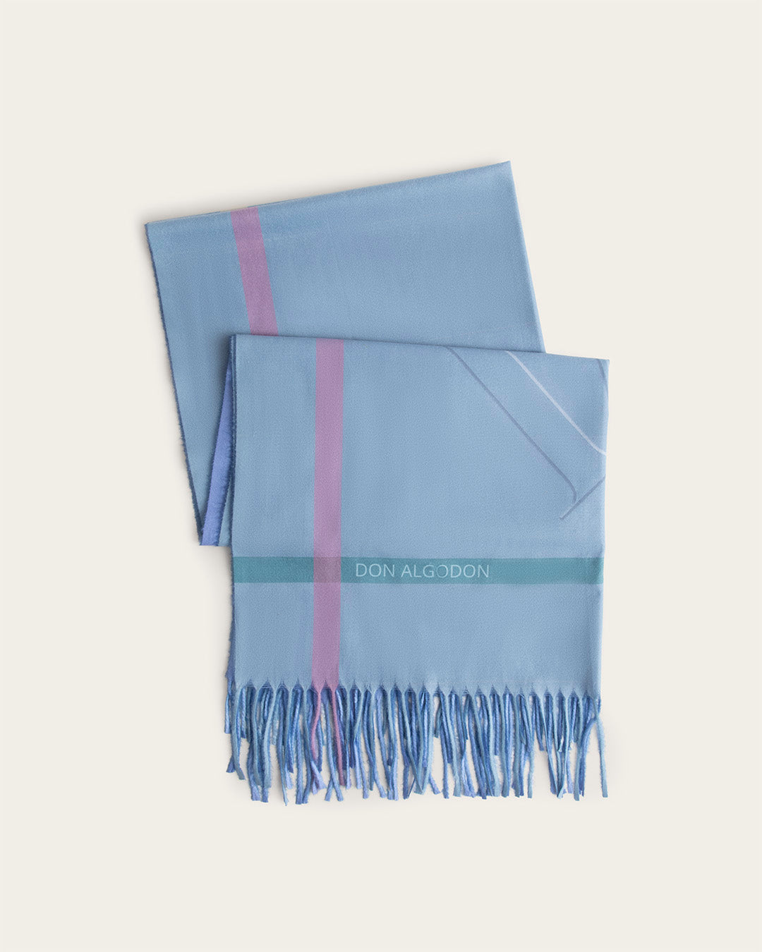 Confeccionada con una mezcla premium de Lana y Viscosa te hará sentir una calidez maravillosa Su diseño de rayas anchas en tonos de azul y rosa es atemporal y fácil de combinar. Es una pieza elegante que te envuelve con el calor de la lana y la delicadeza de la viscosa, creando el accesorio perfecto para tus abrigos más chic.