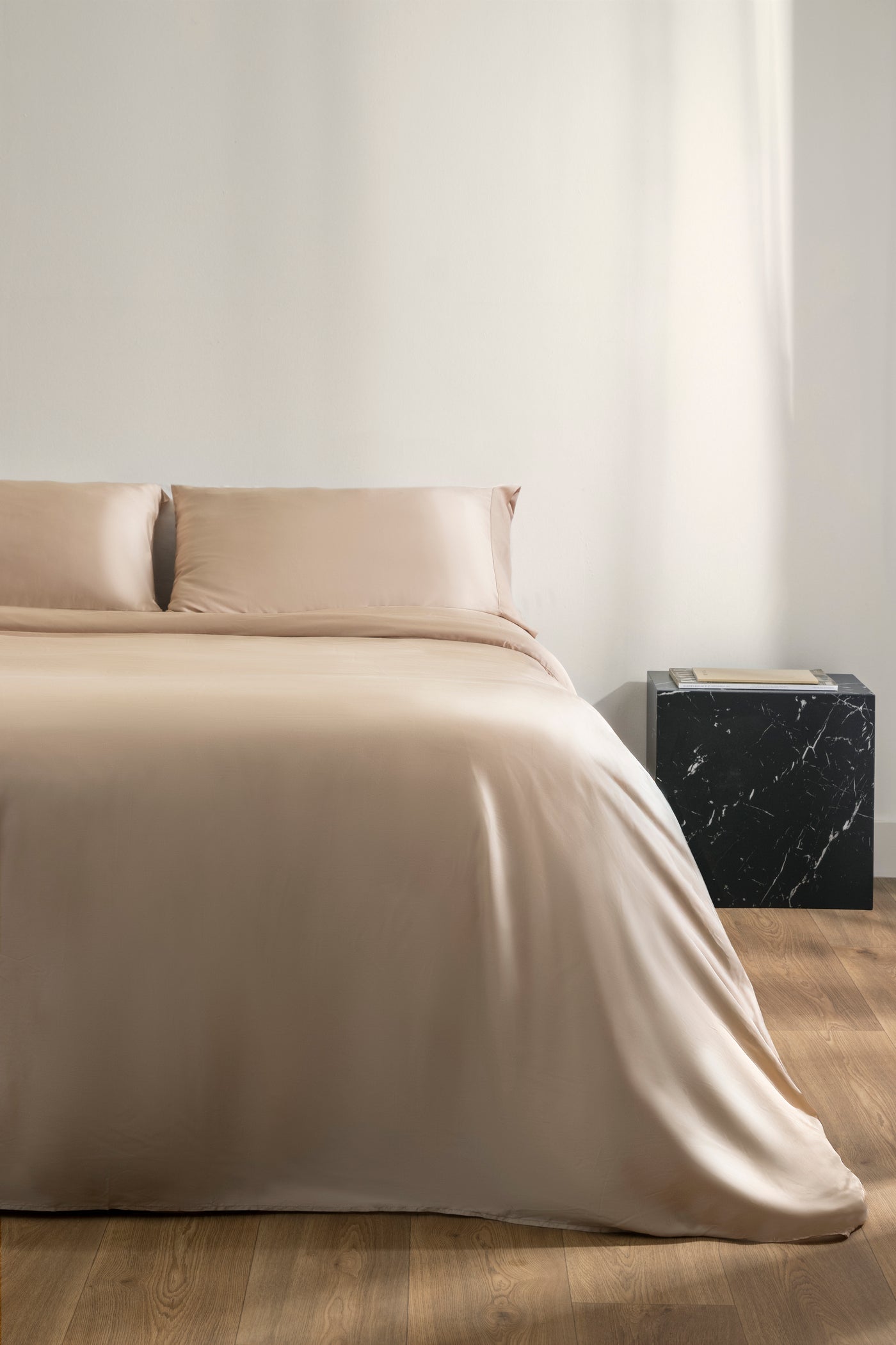 Su tejido de seda vegetal, confeccionado a partir de fibras naturales de bambú, destaca por una suavidad extraordinaria que protege tu piel y cabello durante la noche, ayudando a prevenir el encrespamiento y reduciendo la fricción cutánea.