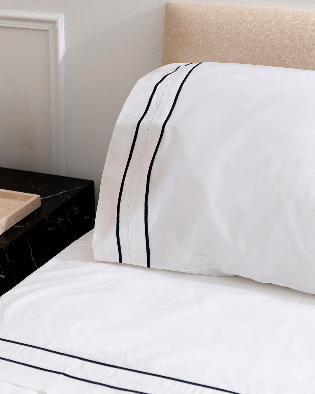 Juego de Sábanas Deva - Algodón 200 hilos - Blanco/Azulón