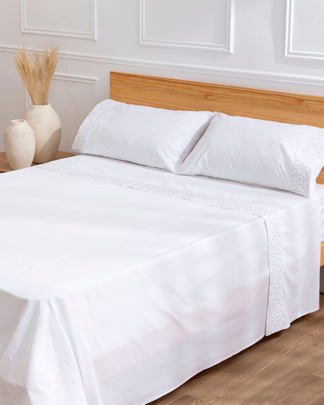 Juego de Sábanas Juno - Algodón 200 hilos - Blanco/Gris