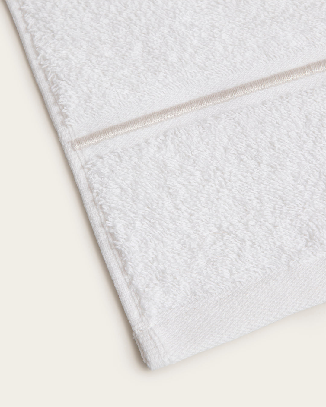 El Juego de Toallas Aura está diseñado para ser la pieza central de tu baño.. Confeccionado en 100% Algodón de alta calidad y una densidad de 500 g/m² estas toallas ofrecen una absorción superior y un tacto suave. Su acabado jacquard y el ribete decorativo proporcionan un toque de diseño minimalista y moderno que rompe con la monotonía del blanco puro.