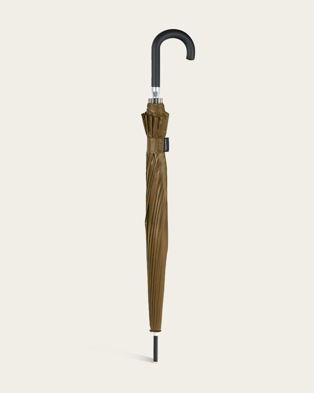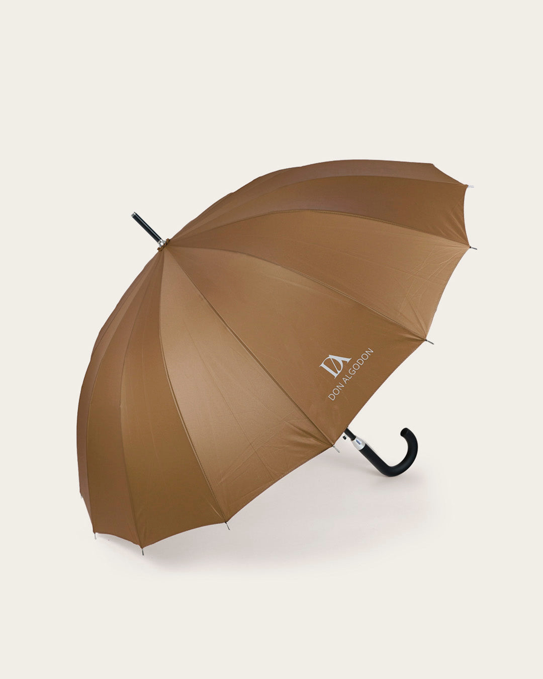 El Paraguas Clásico 16 varillas Está construido con una estructura premium de 16 varillas reforzadas, una característica clave que garantiza una resistencia superior para desafiar los vientos más fuertes sin doblarse ni ceder. Su diseño clásico de varilla larga y su sofisticado color marrón lo convierten en el complemento perfecto. La tela satinada con acabado brillante no solo repele el agua con una eficacia superior, sino que también añade ese toque de lujo discreto que buscamos en cada detalle.