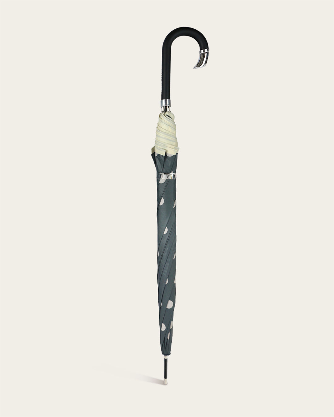 Haz que cada día lluvioso sea una oportunidad para brillar con nuestro paraguas de diseño limpio y moderno, completamente cubierto de elegantes lunares. Con un borde liso, este patrón uniforme aporta un toque divertido y atemporal, perfecto para quienes disfrutan de la sencillez con un guiño de personalidad.
