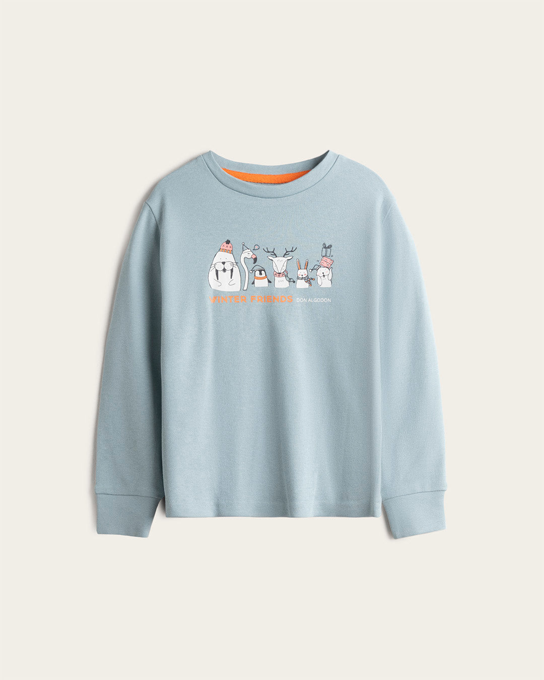 Haz que la hora de dormir sea una aventura con este pijama de algodón para niño, lleno de divertidos estampados de animales.
