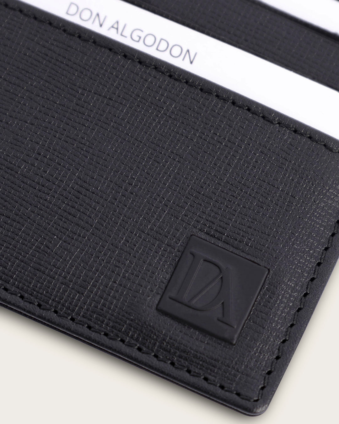Fabricado en piel de vacuno grabada de primera calidad, este tarjetero de Don Algodón combina una estética moderna con la seguridad tecnológica RFID. Es la solución ideal para evitar carteras abultadas, manteniendo un espacio pulcro y profesional en cualquier situación.